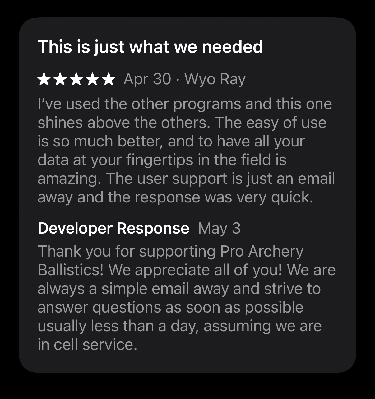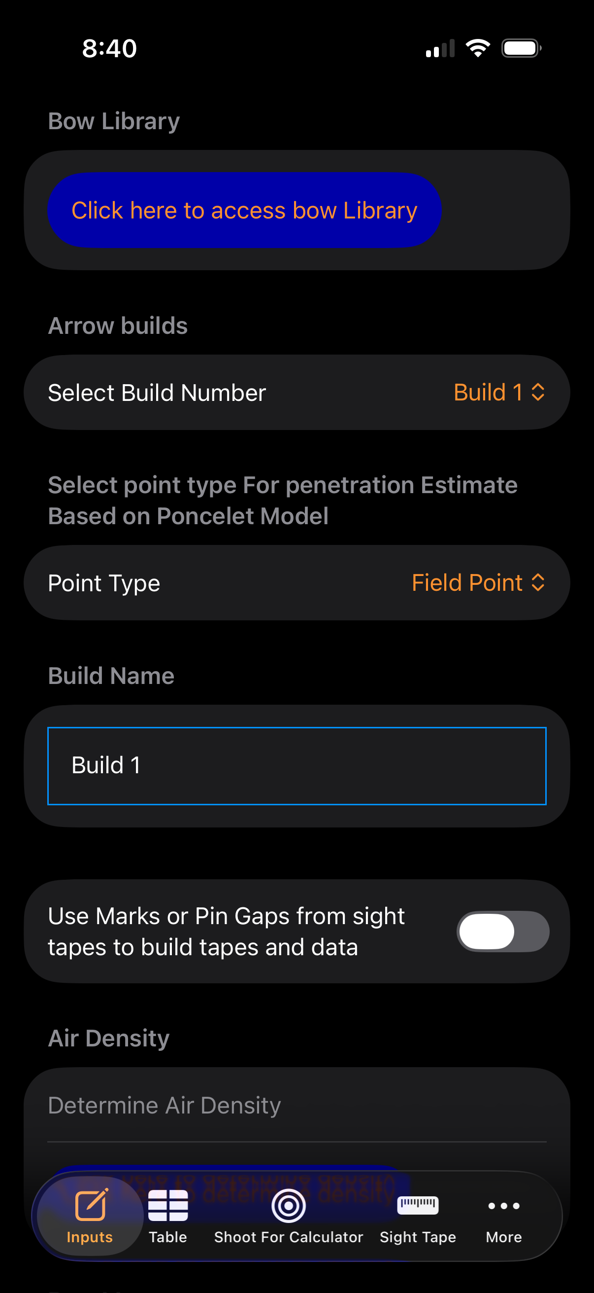 - The app calculates Air Density, which improves long-range accuracy.