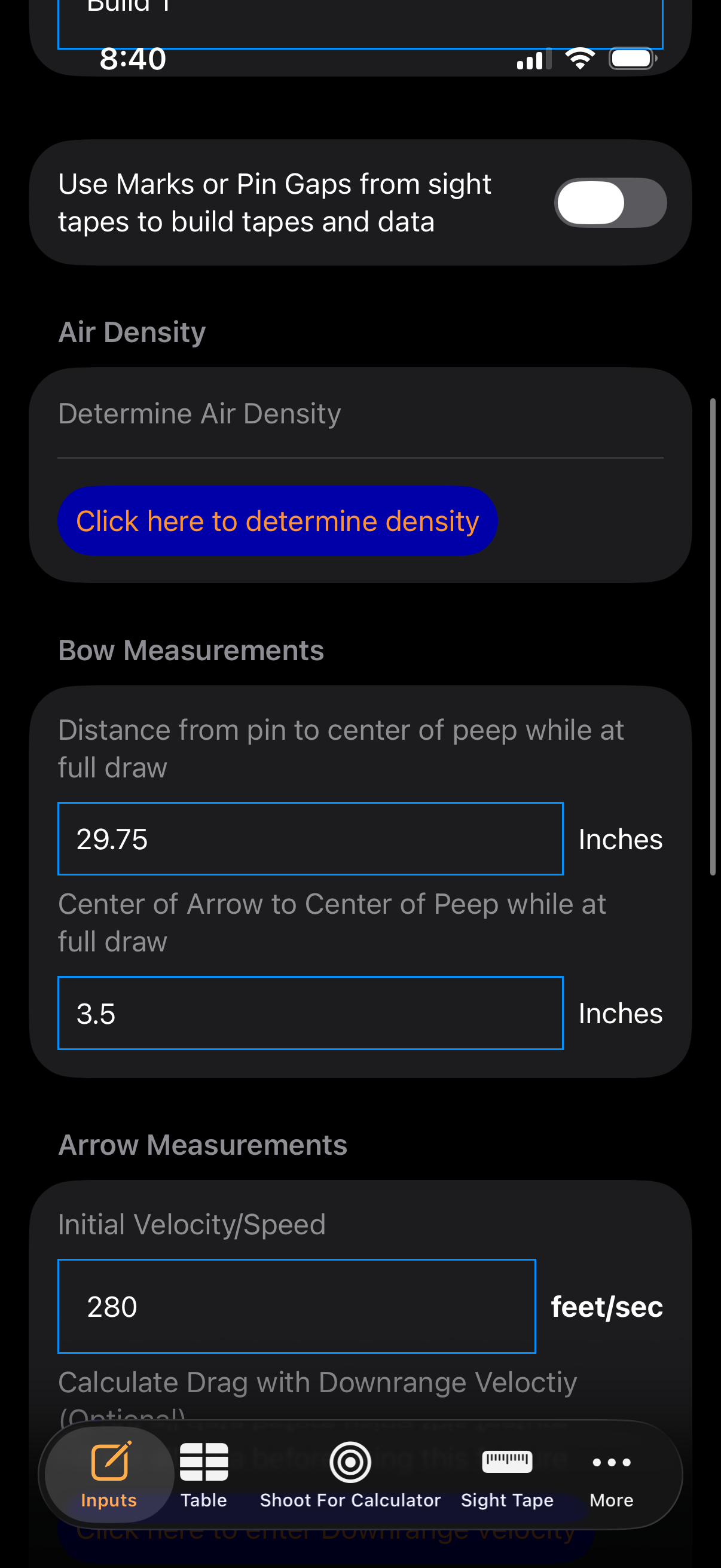 - ON: You manually enter pin gaps or distance marks from your actual sight tape to generate a calibrated custom tape.