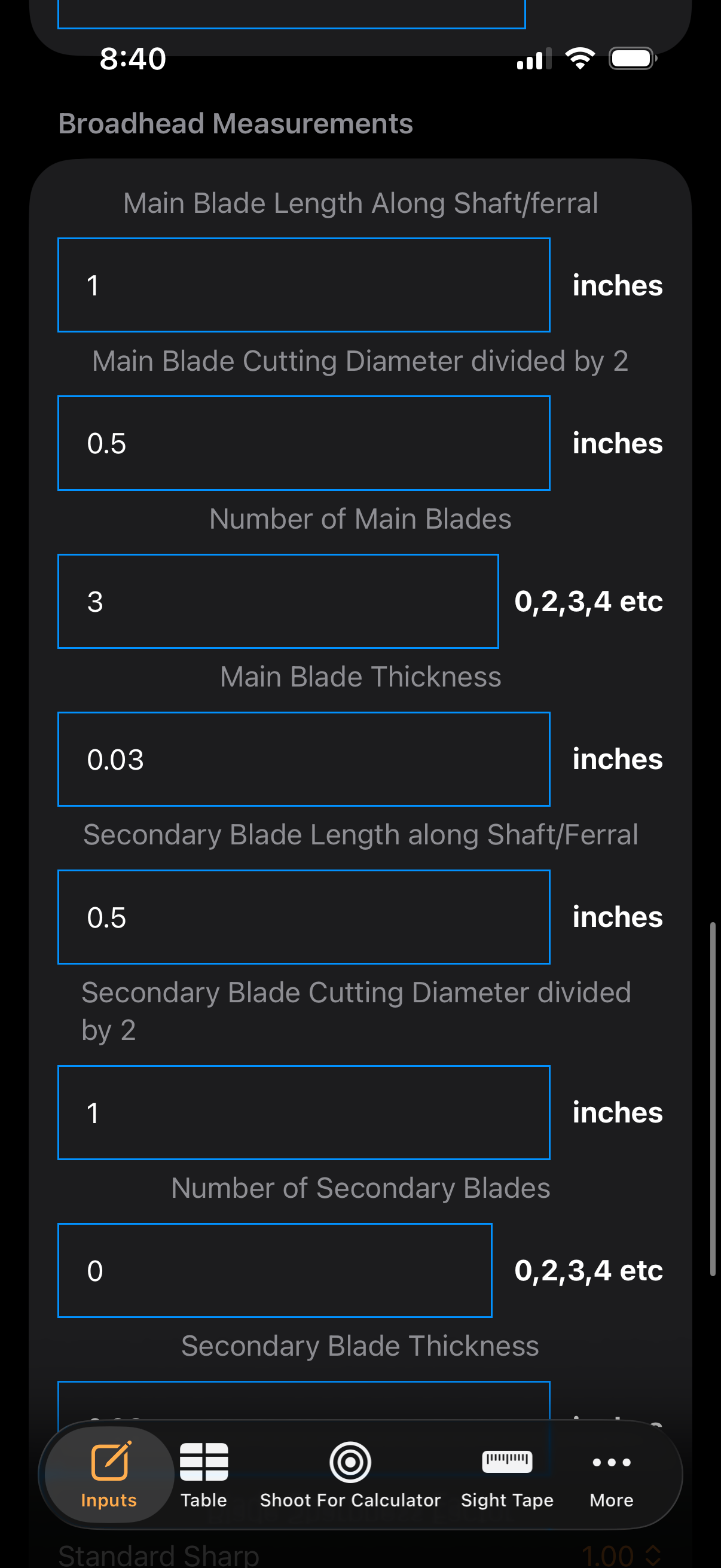 - Enter the length of the blade (when extended for mechanicals) from the start of the blade to the end of the blade along the ferrel or length of the arrow shaft.